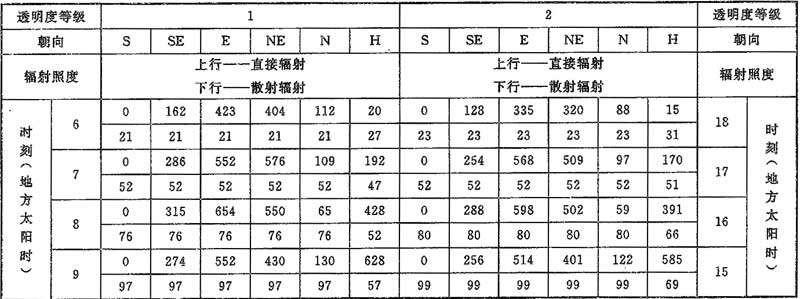 表D.0.1-6 北緯45°透過標(biāo)準(zhǔn)窗玻璃的太陽(yáng)輻射照度(W/m2)
