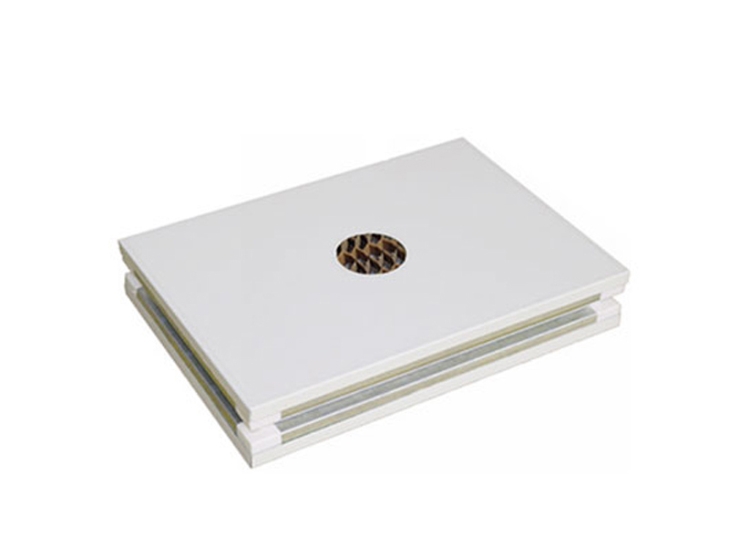 手工紙蜂窩夾芯板構(gòu)成:彩涂板+阻燃性紙蜂窩芯材+彩涂板,采用手工制作工藝。